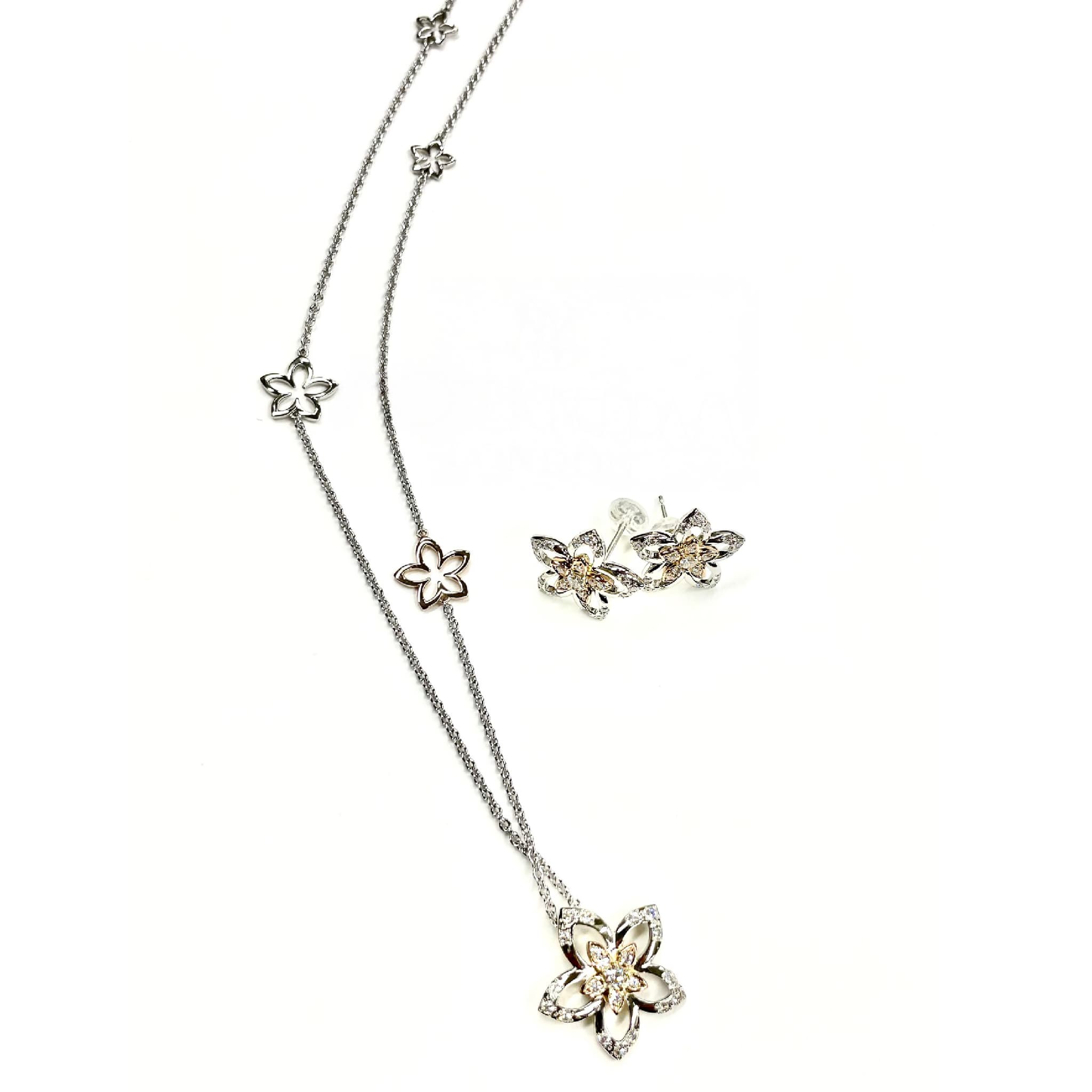 春の到来をお祝いするかのような新作。ぜひ、ネックレスとピアスのセットで、コーディネートをお楽しみください。