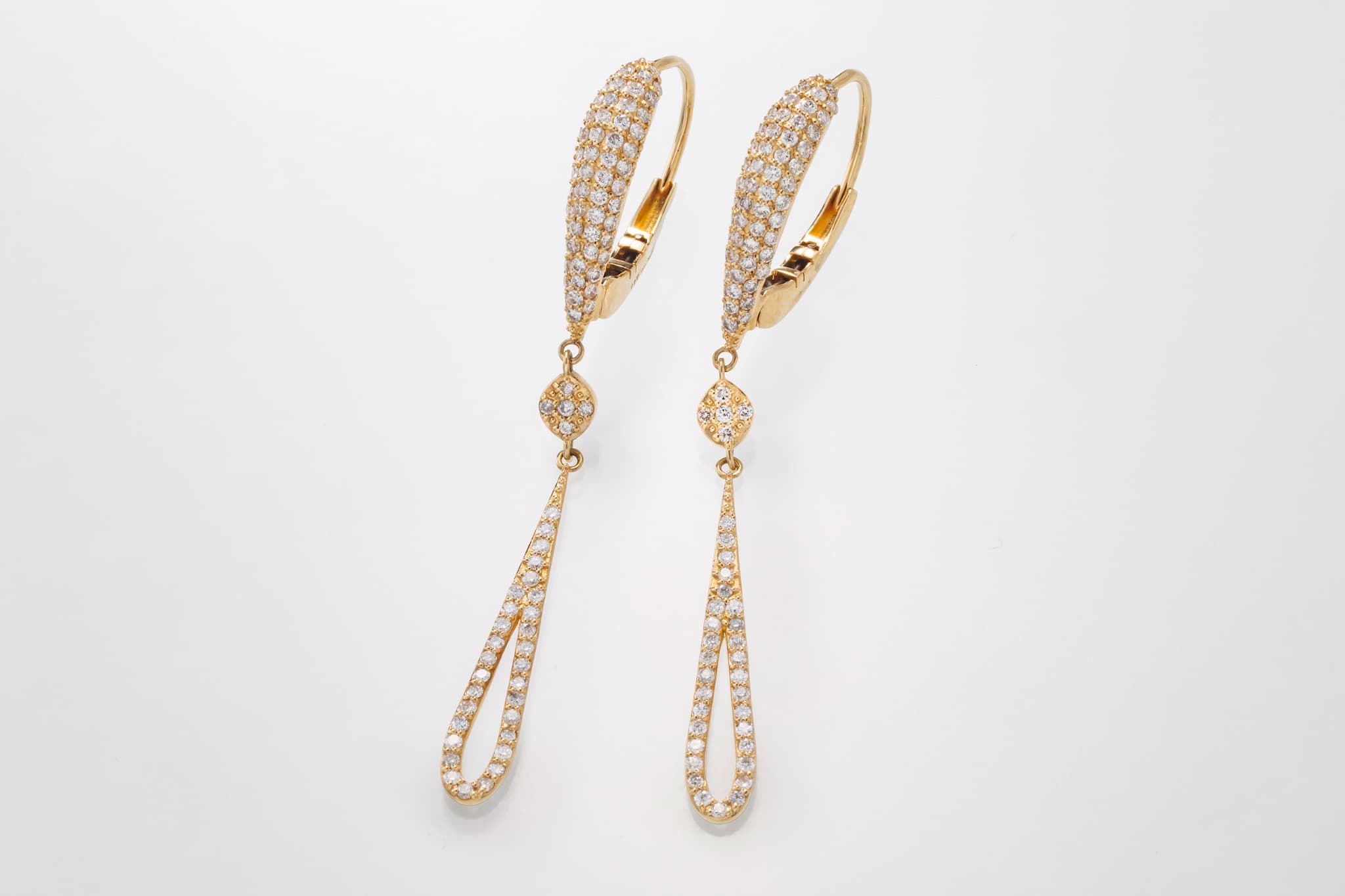 ゴールドとパヴェダイヤを組み合わせた、上質な大人の雰囲気を醸すピアスです。